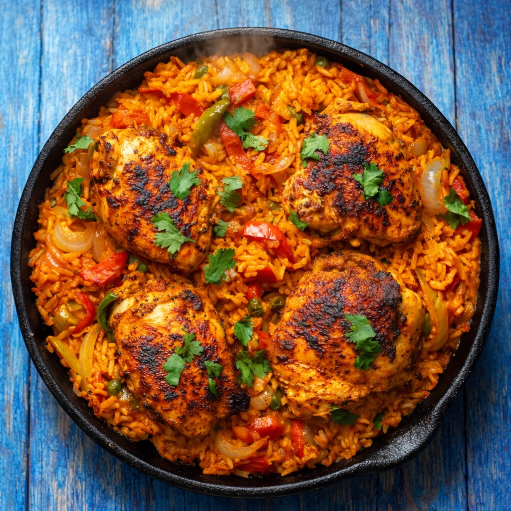 Every plate comes with caramelized sweet plantains or cherrywood-grilled asparagus. The plantains bring sweetness that plays off the savory rice. The asparagus keeps it lighter and adds char. Add fresh sliced avocado if you want the plate to feel complete.